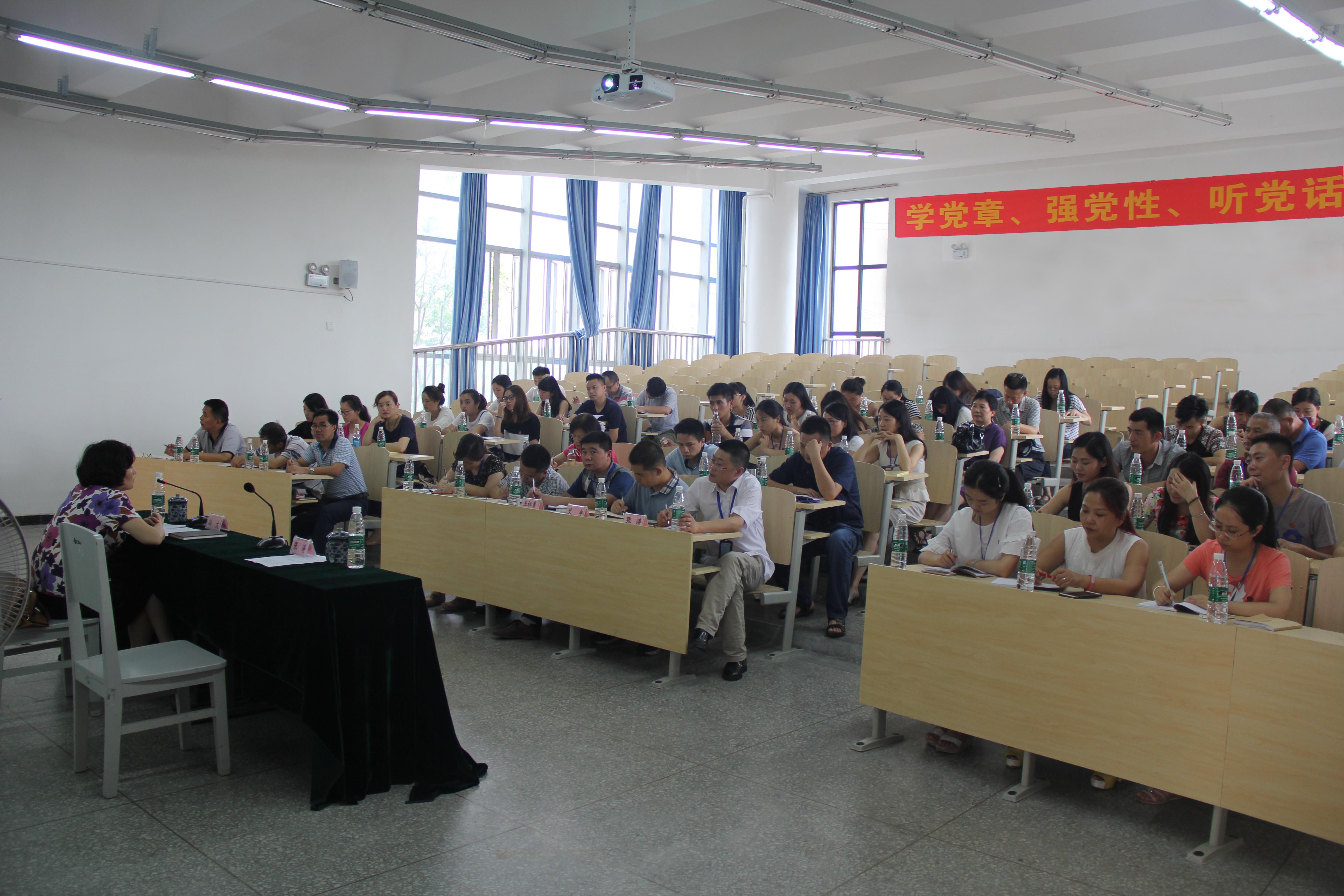 讲课中,孙文组长结合省厅工作安排及学校工作实际,主要从深刻认识“两学一做”学习教育的重大意义、开展“两学一做”要突出主题解决问题、开展“两学一做”要打牢基础抓住关键和坚持学做结合推动工作服务发展等四个方面,全面深入的阐述了“两学一做”学习教育活动的内容和要求。孙组长指出,要深刻理解并充分认识“两学一做”的重要意义,不能以干代学,要真学真懂、入脑入心。在党的发展历程中,革命先烈怀揣无比坚定的理想信念,抛头颅、洒热血,“星星之火,可以燎原”,最终开创了党的伟大事业。理想信仰是一种境界、一种追求,全体党员必须坚定共产主义理想信念,围绕实现中华民族伟大复兴的中国梦而努力奋斗。
