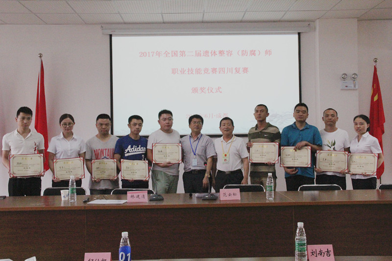 由四川省民政厅主办,四川省民政干部学校(民政行业职业技能鉴定026站)承办的“2017年全省遗体整容(防腐)师职业技能竞赛暨全国第二届遗体整容(防腐)师职业技能竞赛四川复赛”,于2017年6月5日在成都开赛。成都市殡仪馆副馆长、国家高级殡葬考评员林建清出席会议。