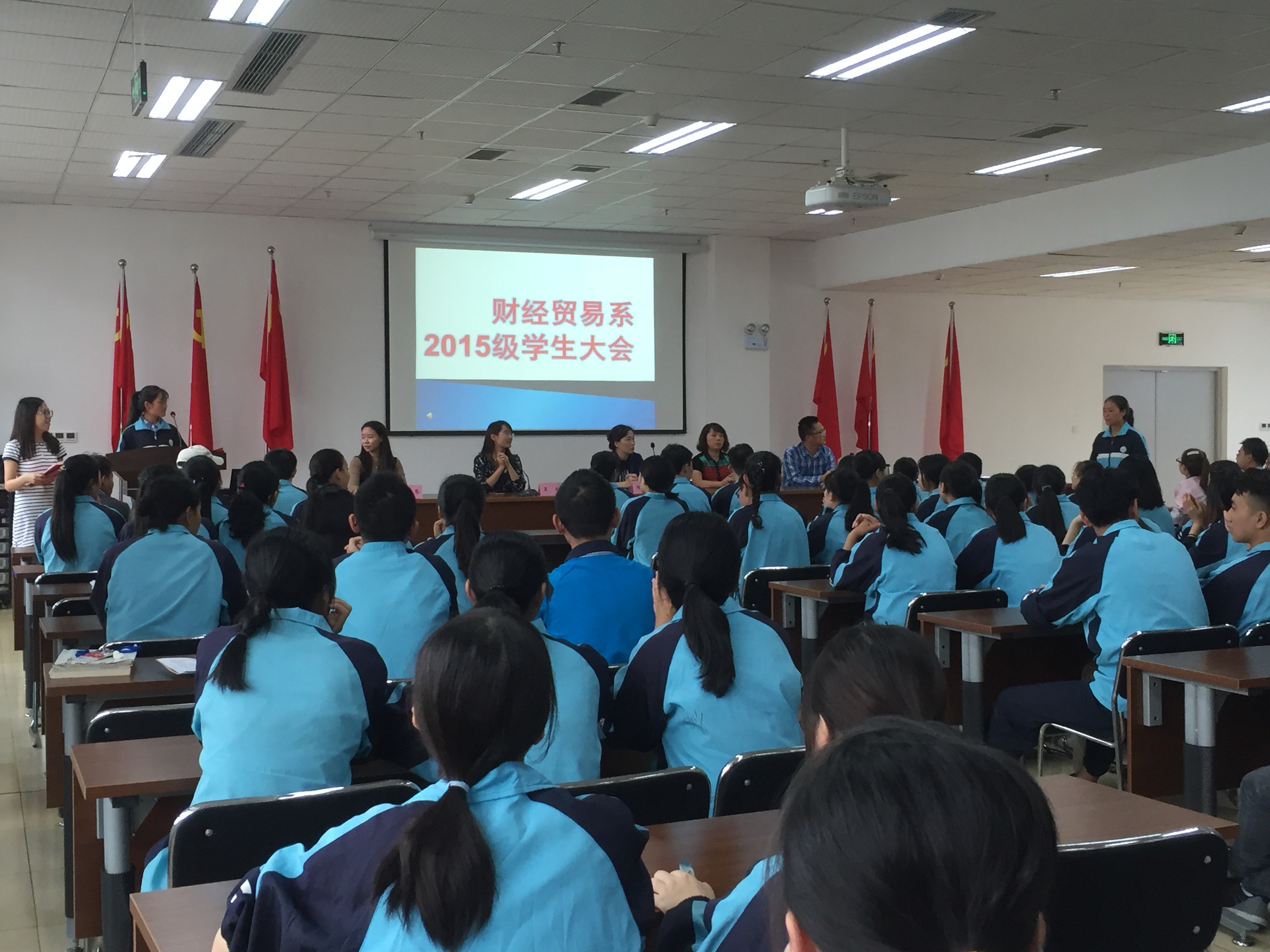 为表彰先进、鼓舞士气,增强高三学生的进取心、责任心和使命感、紧迫感,营造奋发向上的学习氛围,我校财贸系于 9月26日召开2015级学生大会。校长助理杨涛、学工部部长、财贸系相关负责人及2015级全体班主任出席了本次大会。