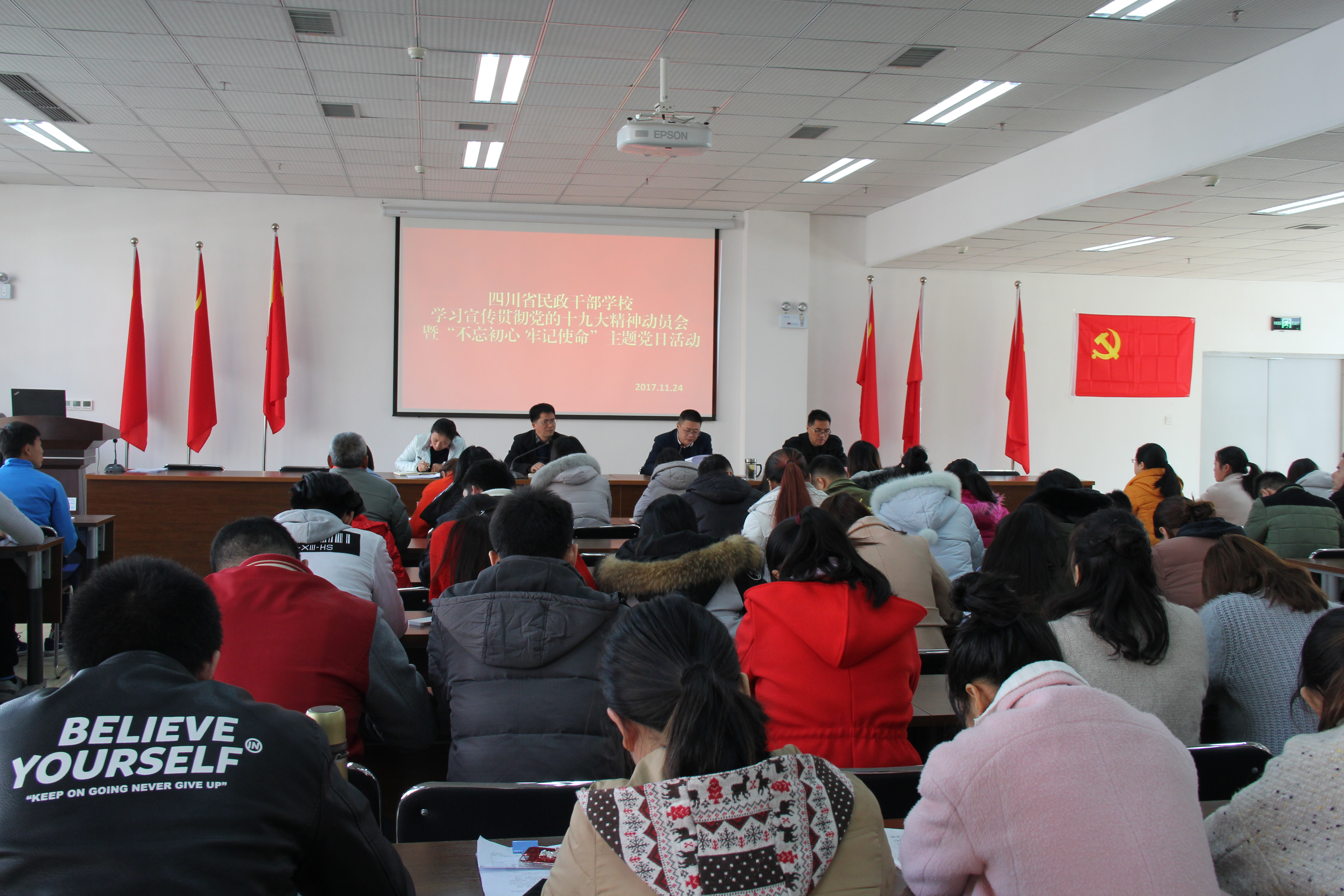 为深入学习宣传贯彻党的十九大精神,11月24日,四川省民政干部学校召开了学习宣传贯彻党的十九大精神动员会暨“不忘初心、牢记使命”主题党日活动。