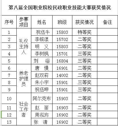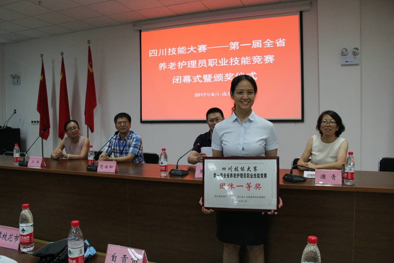 2017年8月,由省民政厅、省人力资源和社会保障厅主办、学校承办的“四川技能大赛─第一届全省养老护理员职业技能竞赛”在我校举行,全省20支代表队的86名选手参加了竞赛。通过理论知识、实操技能和个人职业能力展示三个项目的竞赛,最终泸州市代表队获得团体一等奖,自贡市代表队、资阳市代表队分别获得团体二等奖,南充市代表队、攀枝花市代表队、德阳市代表队分别获得团体三等奖;泸州市代表队的刘世英荣获个人一等奖,泸州市代表队的石玉芳和李亚梅、四川省革命伤残军人医院的李欢欢三人荣获个人二等奖;唐丽等五人荣获个人三等奖。