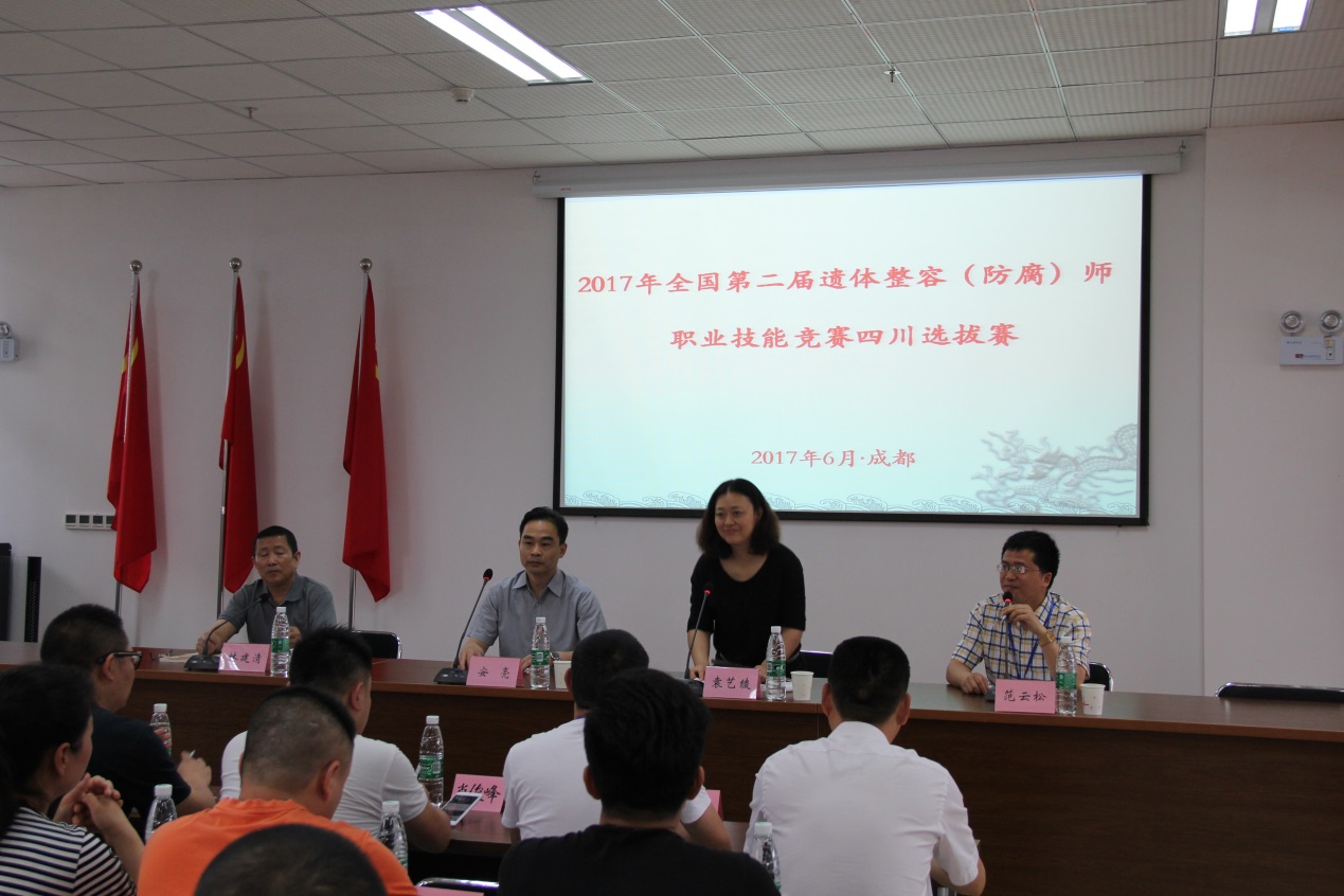 2017年6月1日-9日承办“2017年全省遗体整容(防腐)师职业技能竞赛暨全国第二届遗体整容(防腐)师职业技能竞赛四川选拔赛”,来自各市州的15家殡葬服务机构的29名参赛选手经过初赛选评出13名选手,又经过复赛产生4名选手并组队参加9月在河北省秦皇岛举办的全国竞赛。此次全国竞赛,四川代表队荣获优秀组织奖;来自成都市殡仪馆的高小夫获得特等奖;来自泸州市殡仪馆的张朝虹获得二等奖;来自德阳市殡仪馆的唐宇和眉山市殡仪馆的黄会兰分别获得三等奖。