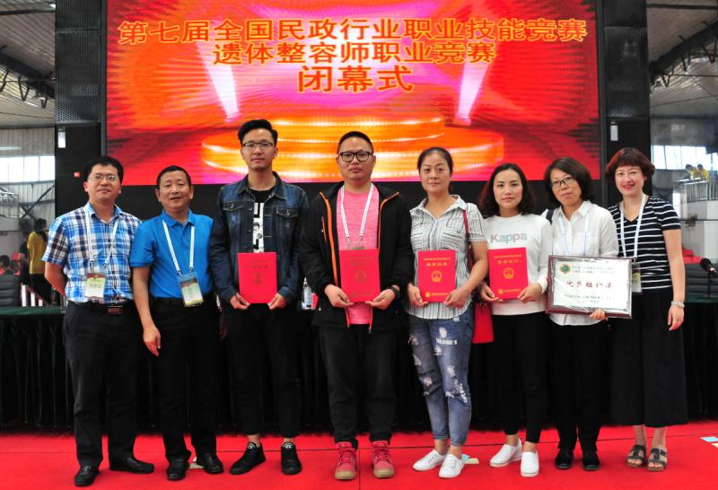 四川殡葬代表队全员——高小夫获得全国大赛特等奖、张朝虹获得全国大赛 二等奖、唐宇和黄会兰获得全国大赛三等奖。