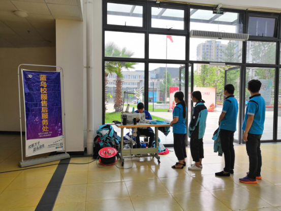 为提高学生的生活质量,给学生们更多关爱,在校内建设和谐友爱的家园氛围,近日,我校权益保障科邀请蓝鸟校服厂到校为学生免费修补破损校服、更换校服拉链。
