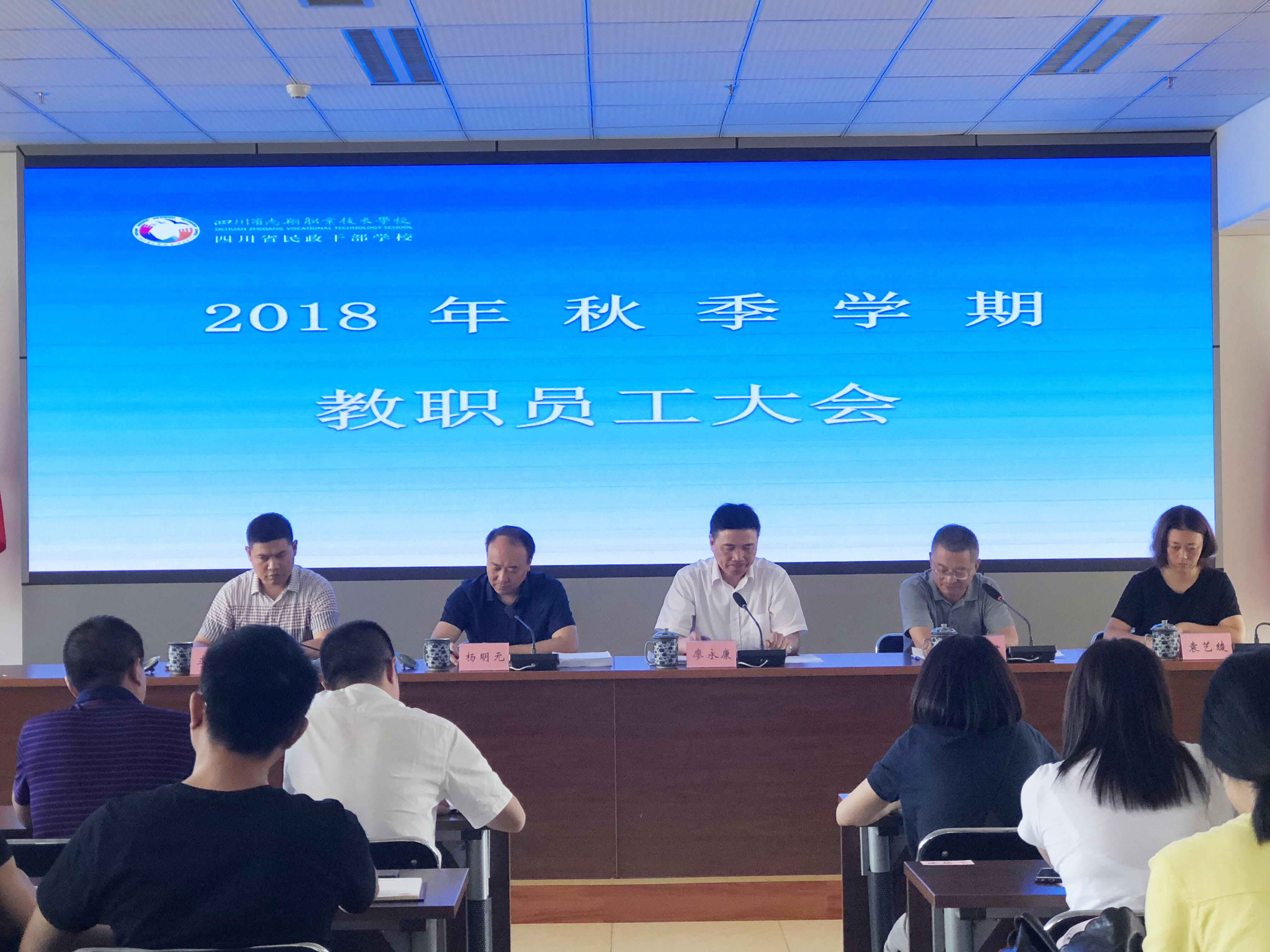 根据厅党组安排,9月3日下午,民政厅副厅长廖永康、驻厅纪检组组长彭先君一行到我校召开了全校教职工大会,通报情况、交流思想、凝聚共识,明确目标、再添干劲、正风肃纪,共同推动民政干部学校工作再上新台阶。