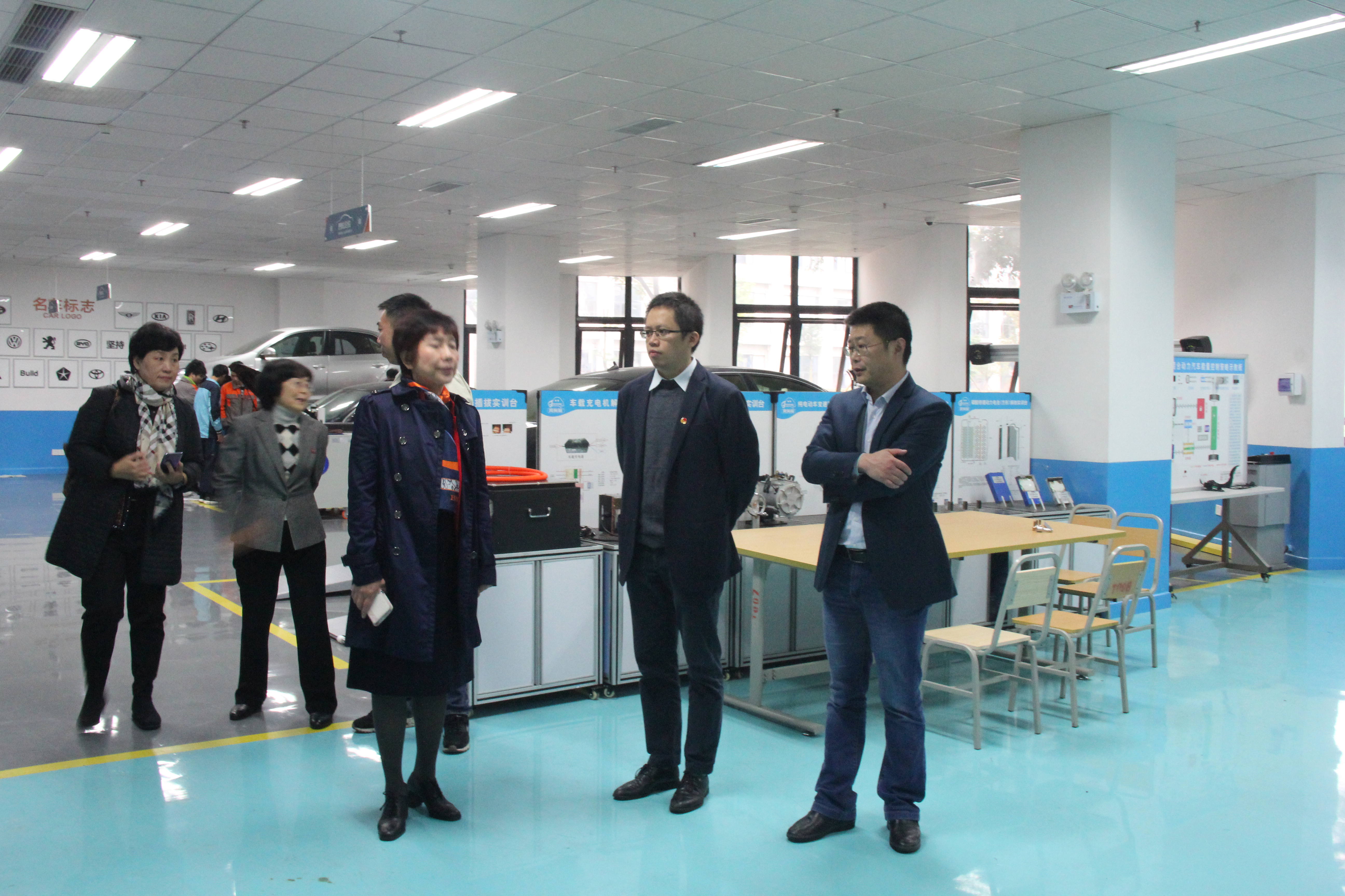 张涛校长带领唐经天同志一行参观我校特色实训室,并详细介绍了学校团建工作开展情况、“志翔班”项目,以及学校改革开放40年取得的成就。