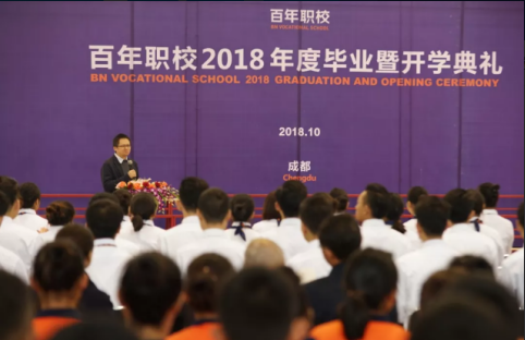 随后,团省委副书记唐经天、四川省青少年发展基金会理事长刘玥、百年职校创始人、理事长姚莉女士以及爱心人士一同出席了“百年职校项目毕业和开学典礼”。唐经天同志向毕业学生颁发了毕业证书,与百年项目学子合影留念。