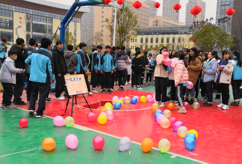游园活动热闹非凡,学生们推出了猜灯谜、跳绳、保卫气球、吹乒乓球等多个趣味项目,操场上不时响起阵阵欢笑。