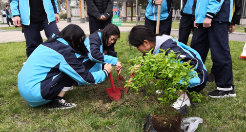 建绿色校园,树志愿意识,3月12财贸系组织全系师生参与”蓝天保卫战,我在行动”植树活动。同学们热情高涨,齐心协力种下植物30余株,为校园增添了一抹色彩。