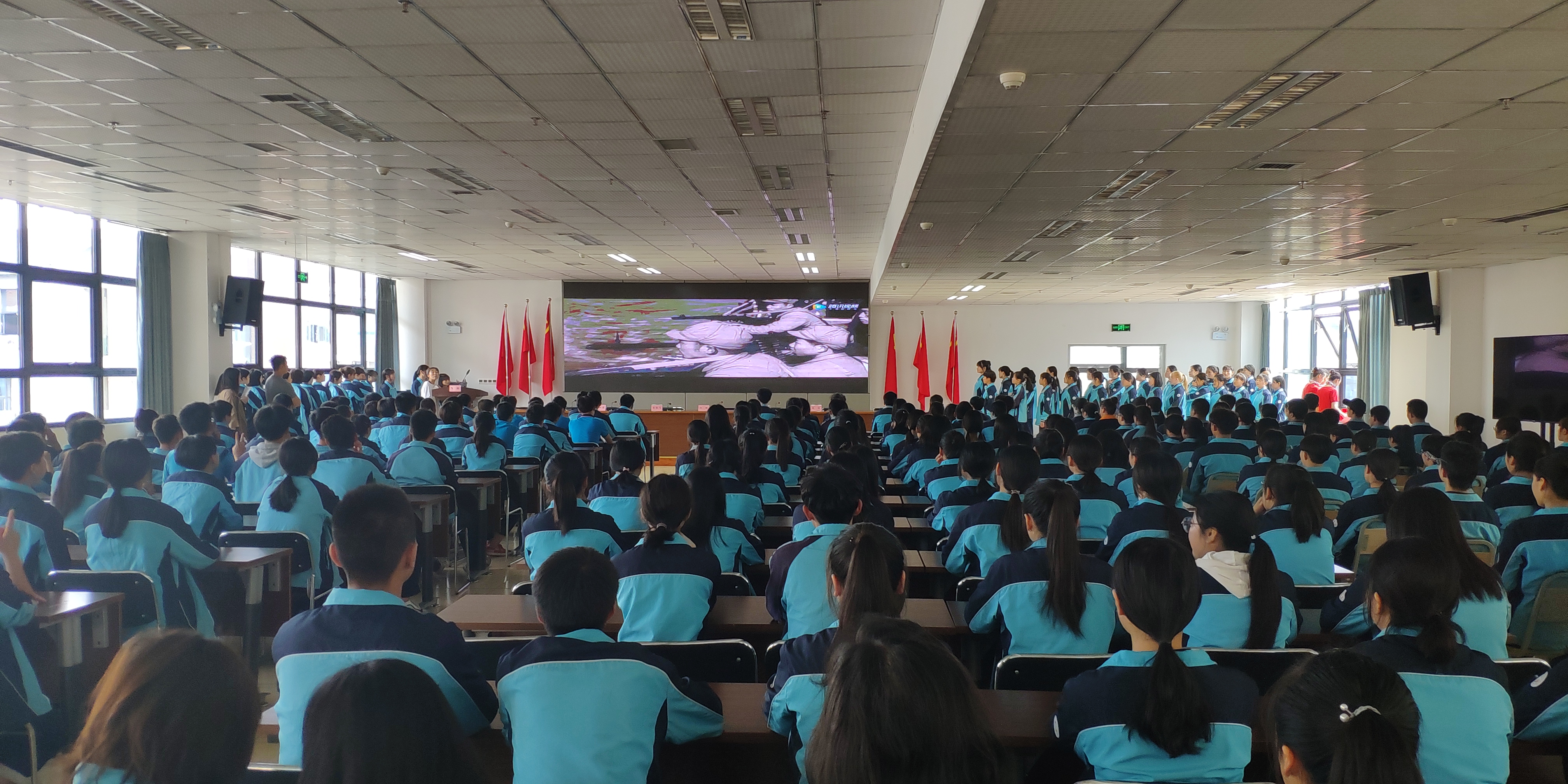会议首先播放了《一百年华》主题视频,同学们认真学习了五四运动的背景、历史,重温中国青年运动的百年荣光,并在老师的带领下学习“习近平总书记在纪念五四运动100周年大会上的讲话”精神。会议同时表彰了我校荣获2019年度校“优秀团员干部”、“优秀团员”称号的个人并为其进行了颁奖。