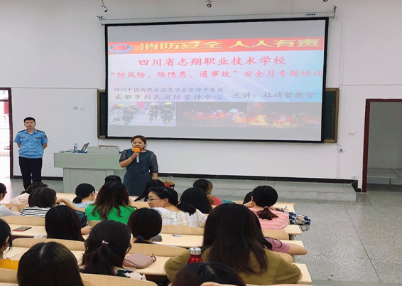 为贯彻落实《四川省安全生产委员会办公室关于开展2019年全省“安全生产月”活动的通知》文件要求,进一步强化学校教职工安全意识,努力打造平安和谐校园,营造安全健康的育人环境,6月19日,学校邀请了成都市利民宣传消防中心培训讲师杜靖哲到校为大家开展安全知识讲座。