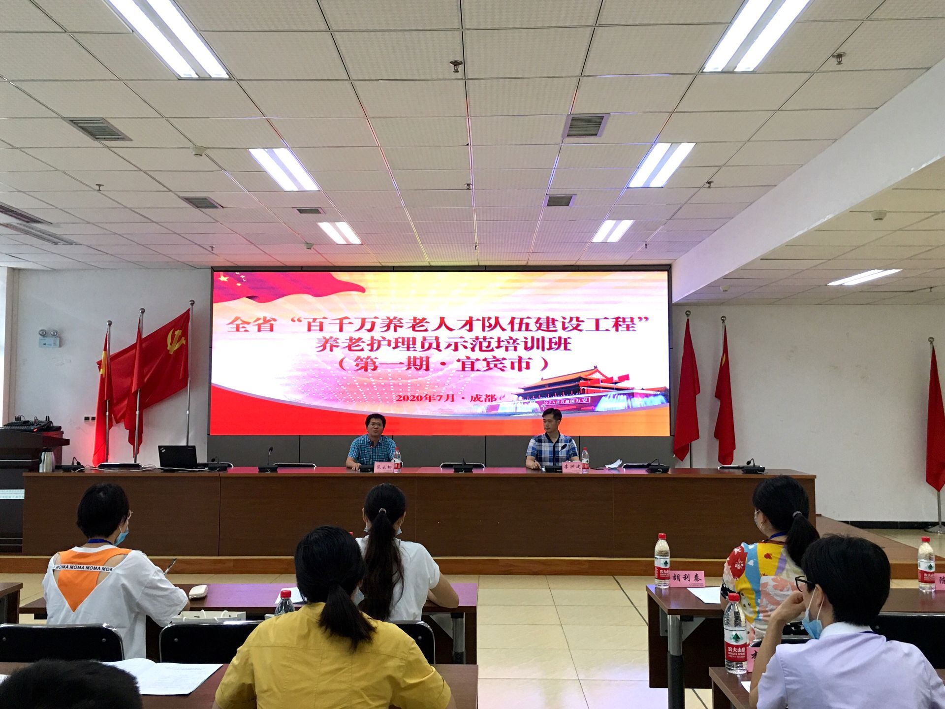 7月27日-30日,2020年全省“百千万养老人才队伍建设工程”养老护理员示范培训班第一期在我校顺利举行。参加此次培训的是宜宾市各养老机构中从事一线养老护理的人员,共计75人。在开班仪式上,学校校长助理范云松对参训学员的到来表示热烈欢迎,宜宾市民政局副局长李洪建对学员提出了相关纪律要求。
