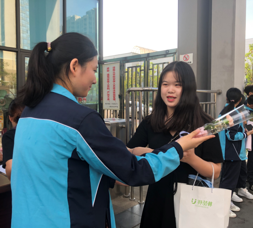 李旭峰老师开心地握着鲜花朝教学楼走去,他笑着说:“收到同学们的祝福很开心,这一刻,所有的付出都是值得的,孩子们的未来可期!”