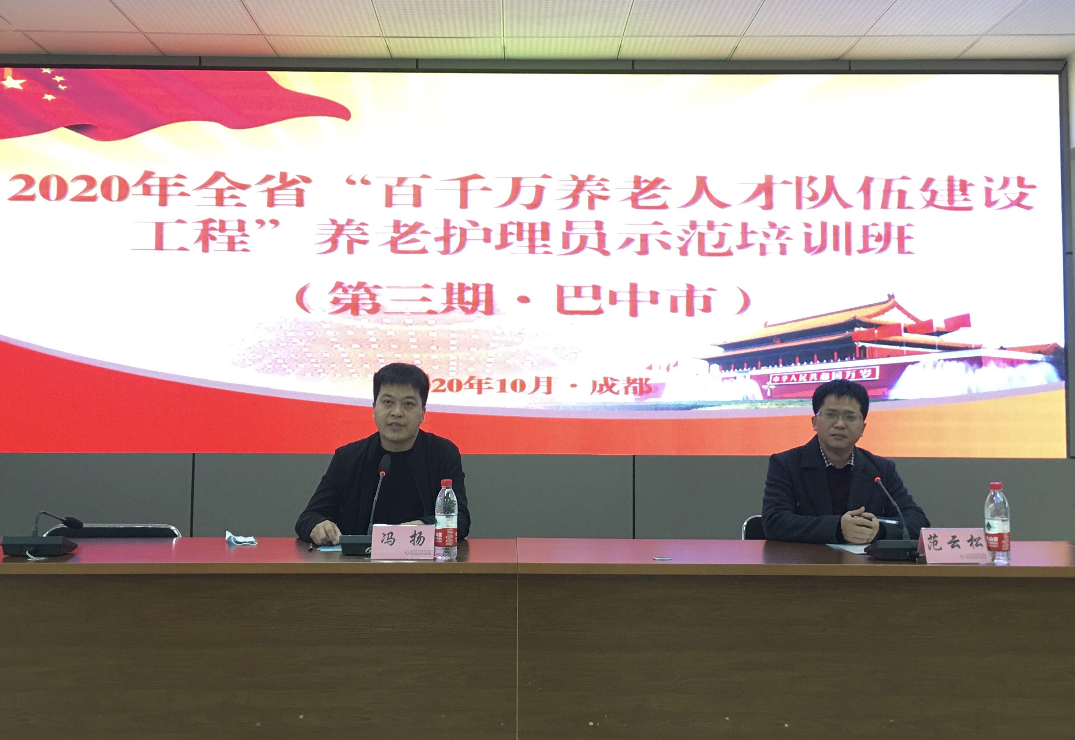 10月13-16日,2020年全省“百千万养老人才队伍建设工程”养老护理员示范培训班(第三期·巴中市)在我校举办。学校校长助理范云松、巴中市民政局慈善办副主任冯扬出席开班仪式。参加此次培训的是巴中市各养老机构中从事一线养老护理的人员,共计68人。