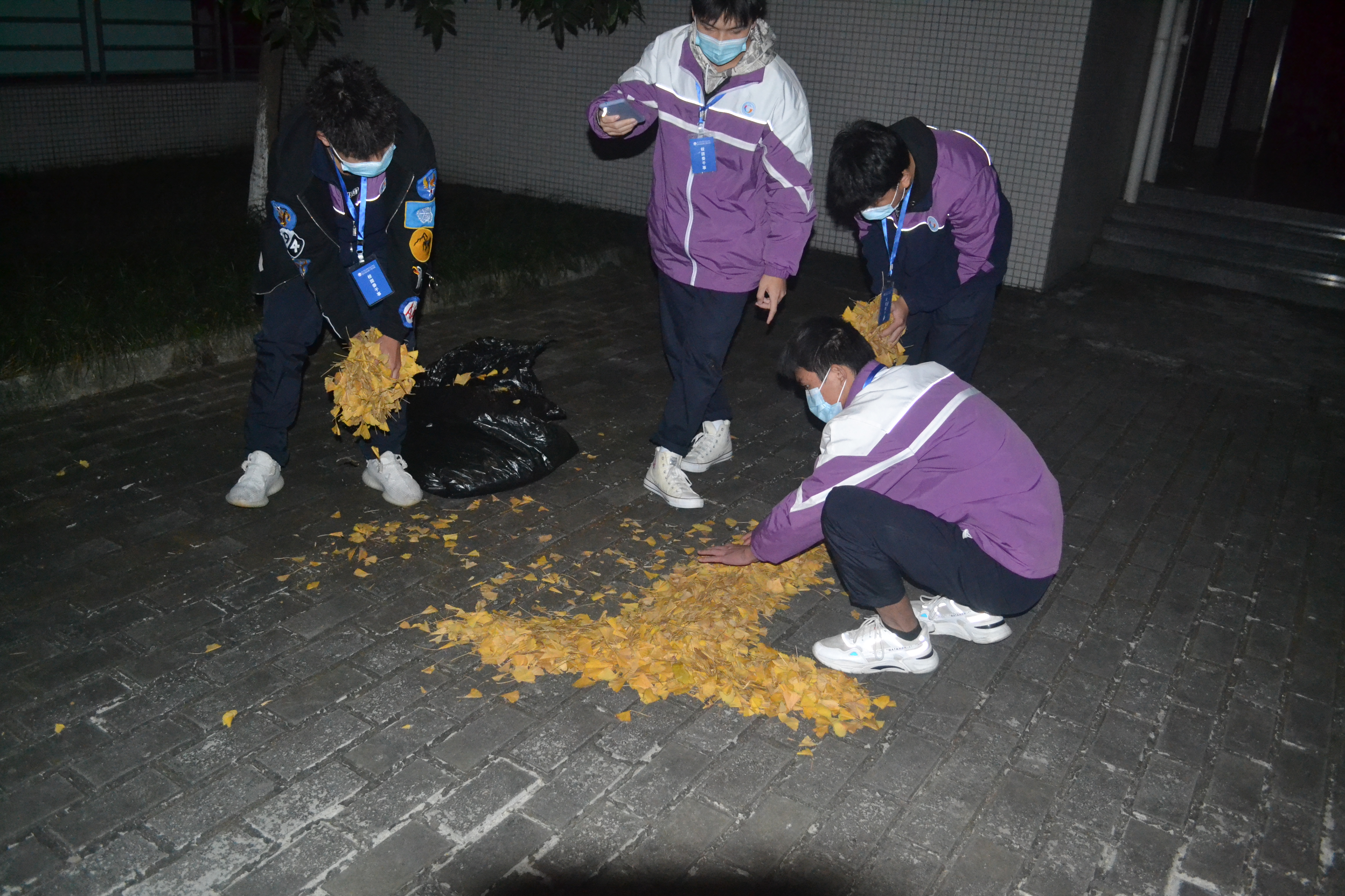 11月19日6点30,当深沉的黑还笼罩着大地,学校校团委的同学们便开始忙碌了起来。起床穿衣洗漱集合,一气呵成。全员集合完毕后,大家便分工合作,热火朝天地动起手来,用实际行动准备着将在今天献给母校及所有教师们的惊喜礼物。从现场照明、收集落叶到指挥设计、效果预览,整个过程配合的天衣无缝,大家相互打气,相互鼓励,干劲十足。