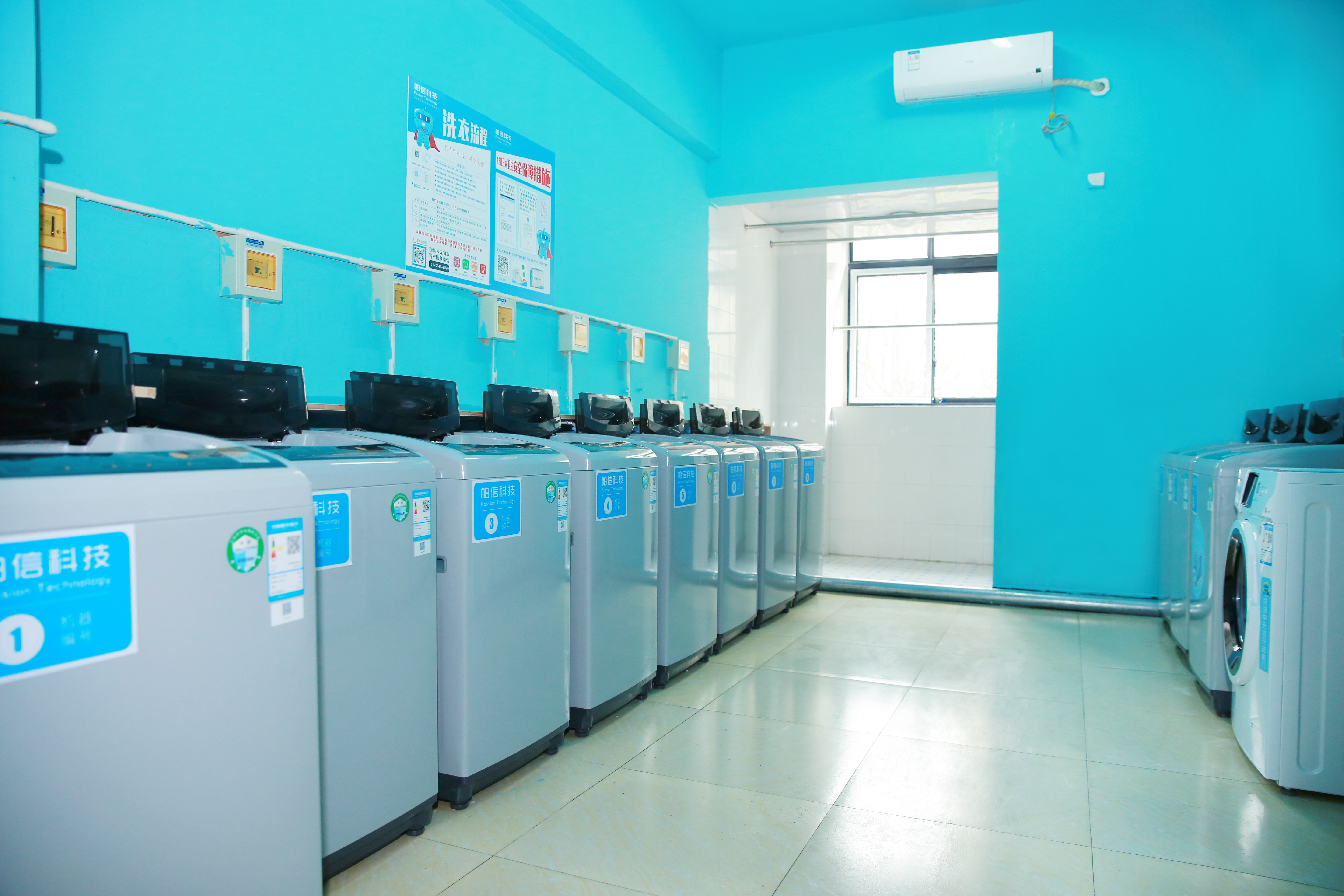 学校男女生各有一栋公寓楼。电梯公寓 6人间,有空调、24小时热水、独立卫生间(可洗浴)、洗漱台(可清洗小件衣物)。公寓楼配有开水房、公共浴室、洗衣房(可微信扫码清洗大件衣物,4元/次)