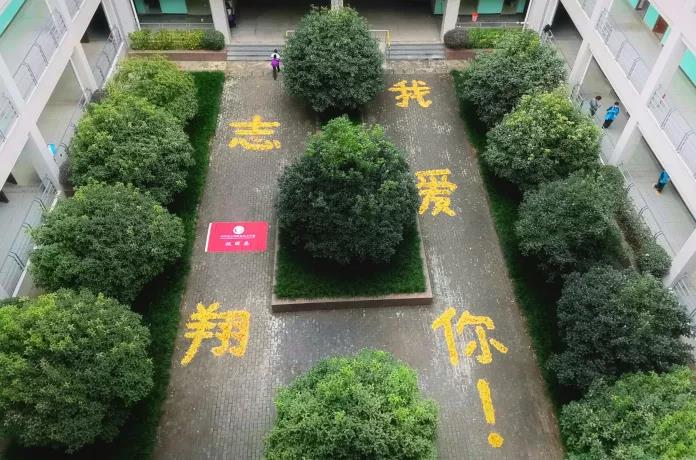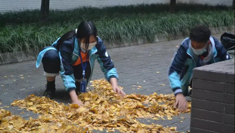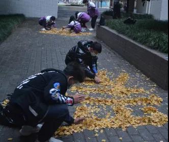众人拾柴火焰高,在同学们的齐心协力下,不到一个小时的时间,便完成了一项“巨大的工程”,大家用收集好的散落的银杏叶分别在一、二号教学楼的活动空地上堆砌出对母校和老师们想说的话——
