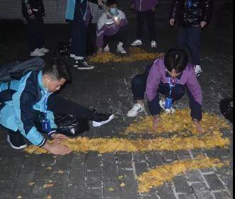 现场照明、收集银杏落叶、指挥设计、效果预览……整个过程配合的天衣无缝,大家相互打气,相互鼓励,干劲十足。