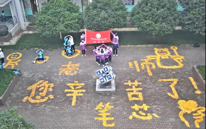 这是一份特殊的礼物,也是一份暖心的问候,这场不期而遇的“表白”引得各系部同学们阵阵欢呼,也换来了老师们欣慰的笑容。