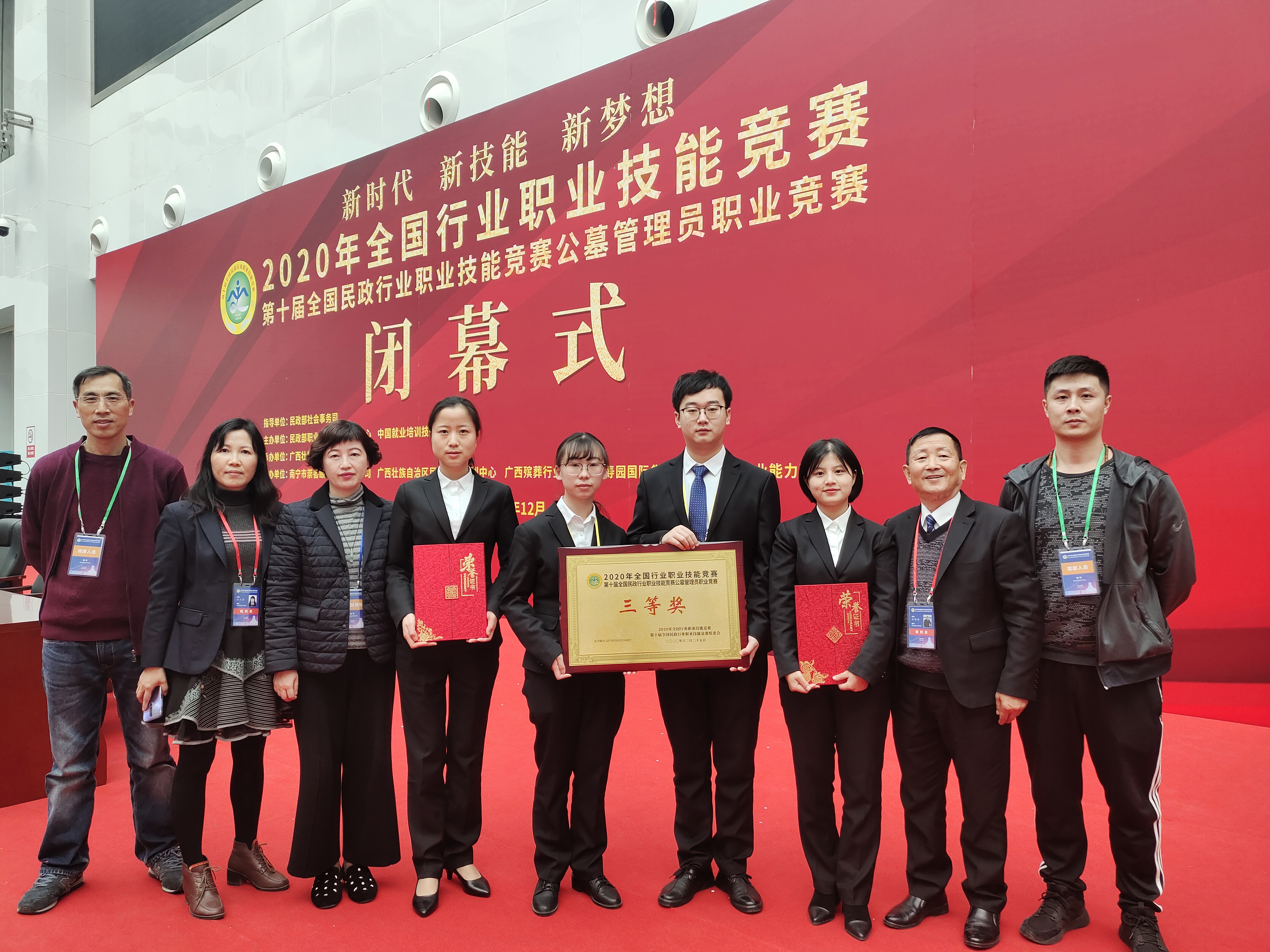 12月21日至25日,“2020年全国行业职业技能竞赛——第十届全国民政行业职业技能竞赛公墓管理员职业竞赛”在广西省南宁市举办。我省选派省赛前四名选手曾茂轩、张妮、但旭萍、毛莉组成四川代表队参加竞赛,由四川省民政厅二级巡视员王小平领队参加。