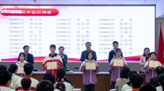 志翔奖学金获得者赵谢文上台发言,他结合自己2年来在志翔的学习生活经历与同学们分享了提高学习效率的心得体会,并向全校青年学子发出倡议,号召同学们坚定理想信念,勇担青春使命;守正开拓创新,谱写青春华章!