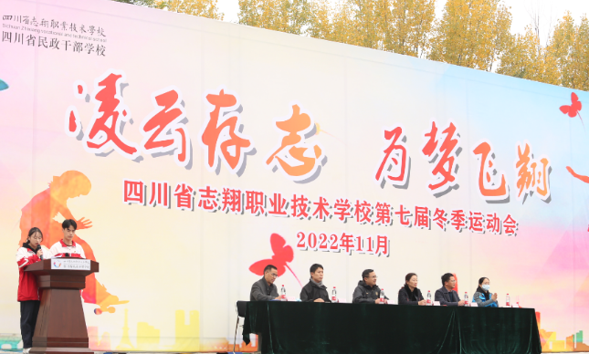 为贯彻落实党的二十大提出的“广泛开展全民健身活动,加强青少年体育工作,促进群众体育和竞技体育全面发展,加快建设体育强国”的战略部署,11月18日,“凌云存志,为梦飞翔” 四川省志翔职业技术学校第七届冬季运动会拉开序幕。校长兰田、副校长杨涛、田野以及全校师生参加了开幕式。