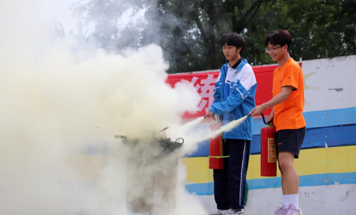 在足球场上,保卫干事为学生讲解了火灾来临时的逃生技巧以及灭火器的正确使用方法,进一步提升了同学们的安全知识水平及自救、互救能力。