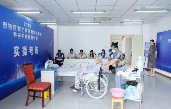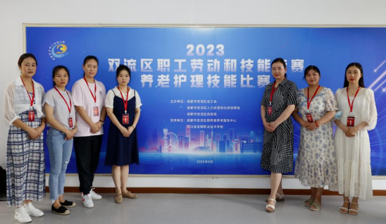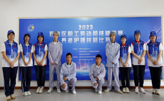 近日,应双流区总工会的邀请,我校派出师生团队参与了由成都市双流区总工会、双流区人社局、双流区民政局主办的“2023双流区职工劳动和技能竞赛-养老护理技能比赛”赛事工作。团队共17人,7位老师任裁判(其中余世蓉老师担任主裁判),10位同学担任赛会志愿者。