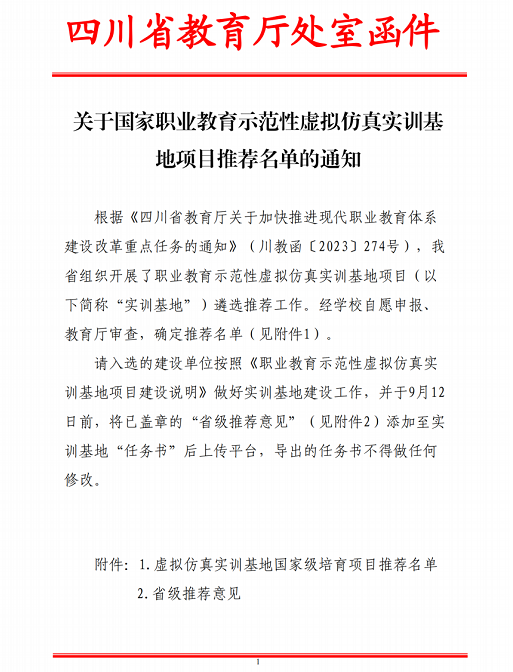 日前,经四川省教育厅遴选,我校申报的“现代民政服务虚拟仿真实训基地”项目成功入选国家职业教育示范性虚拟仿真实训基地培育项目推荐名单。