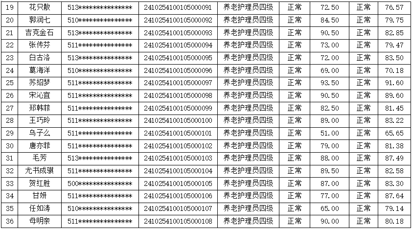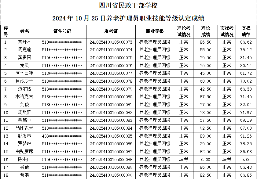 附件:2024年10月25日养老护理员职业技能等级认定成绩